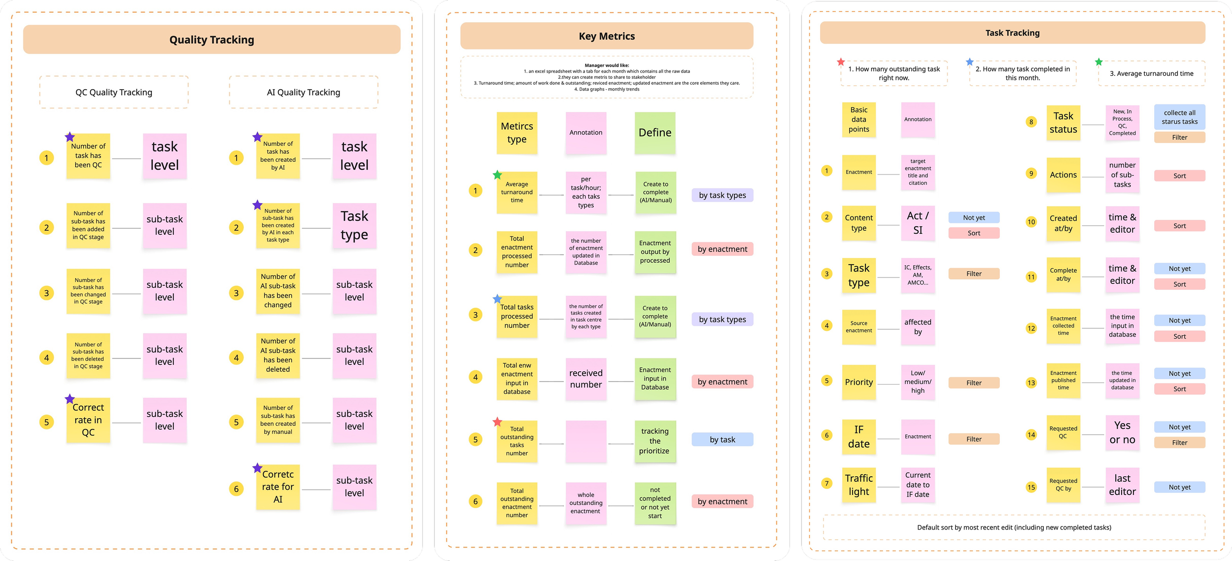 To untangle the complex editorial logic, I ran card sorting sessions to reorganize raw metric requests into clear, user-centered categories. This process helped bridge the gap between operational thinking and intuitive UI structure.