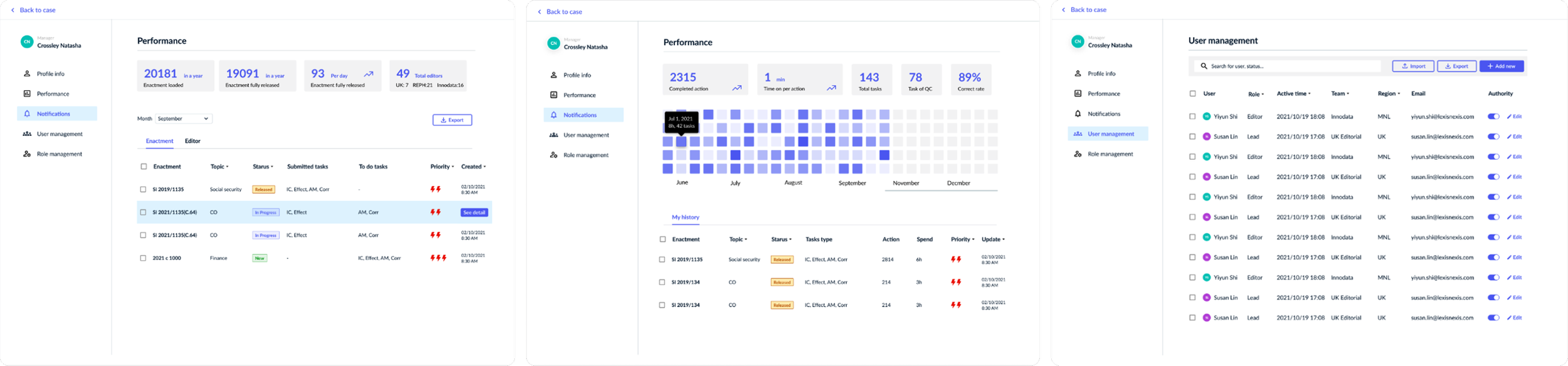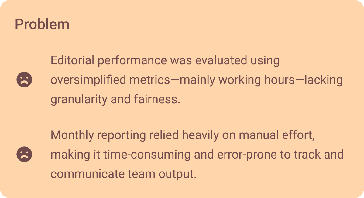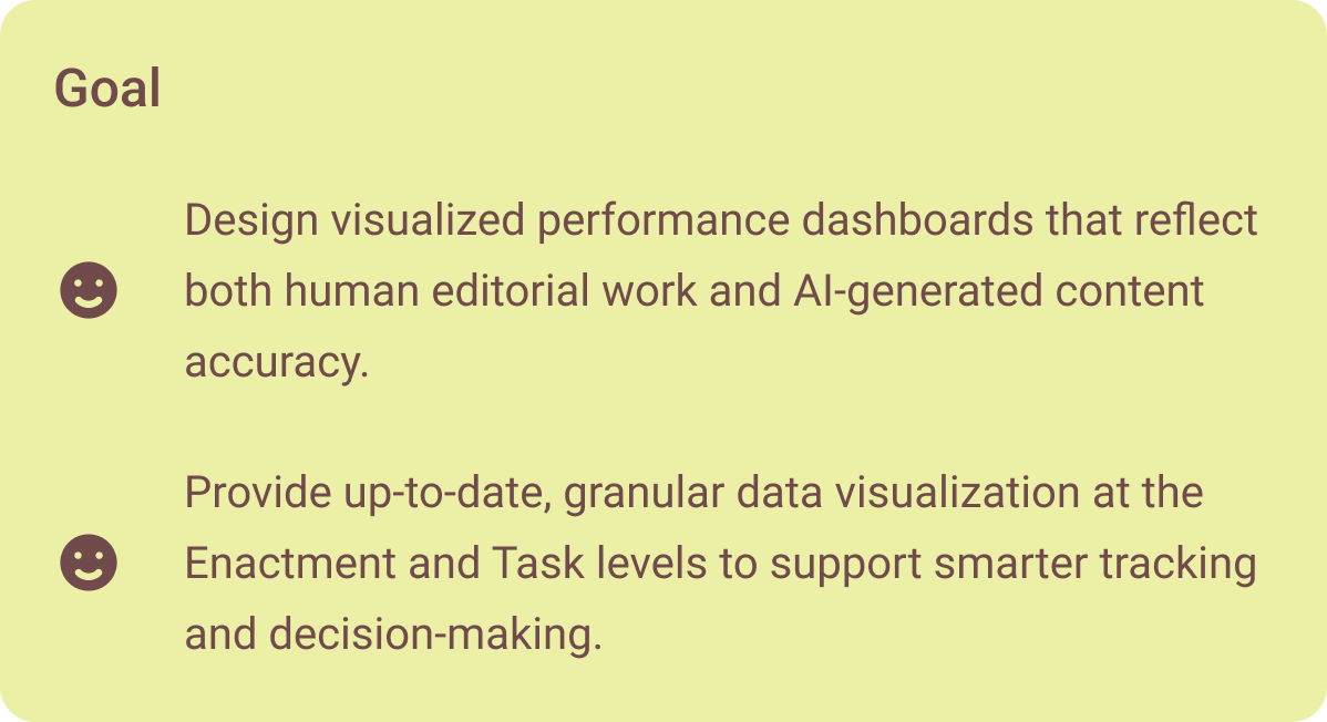 Faced with a dense, non-design-native brief from editorial managers, I extracted core requirements and transformed them into intuitive interface concepts. The original request focused on metrics and reporting—but lacked any UX framing. I bridged that gap, designing clear visual hierarchies and interactive data views tailored for non-technical users.