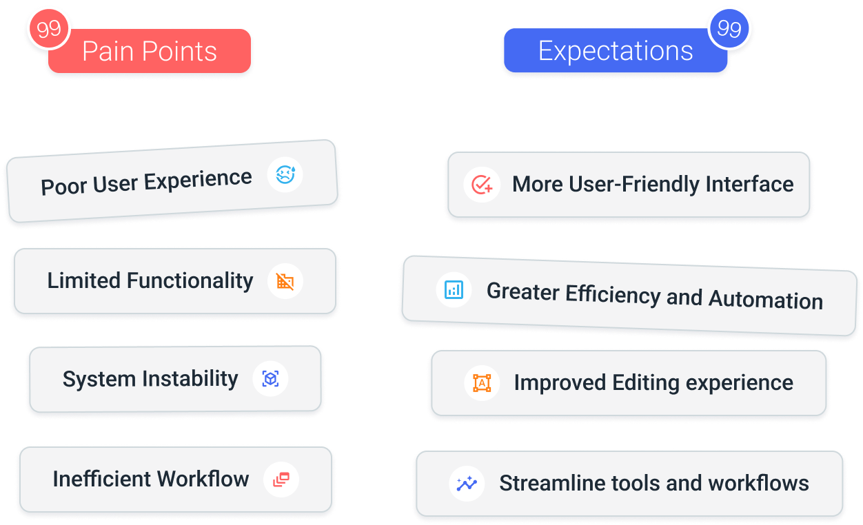 At the start of the project, the product vision was still unclear. Therefore, we began by gathering feedback on their existing pain points and expectations for the future product.